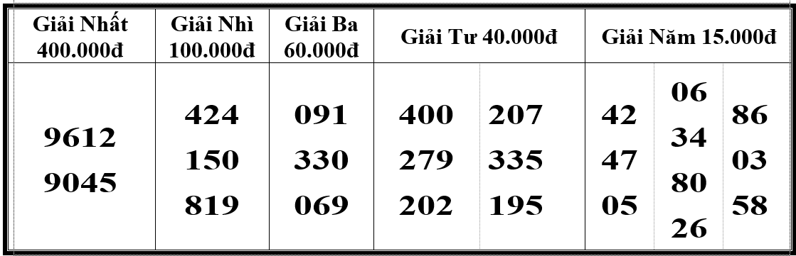 Kết quả xổ số Bóc phát hành ngày 15/9/2025