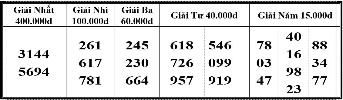 01 GIẢI ĐẶC BIỆT TRỊ GIÁ 6.000.000 đồng