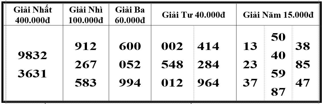 Kết quả xổ số Bóc phát hành ngày 26/8/2025
