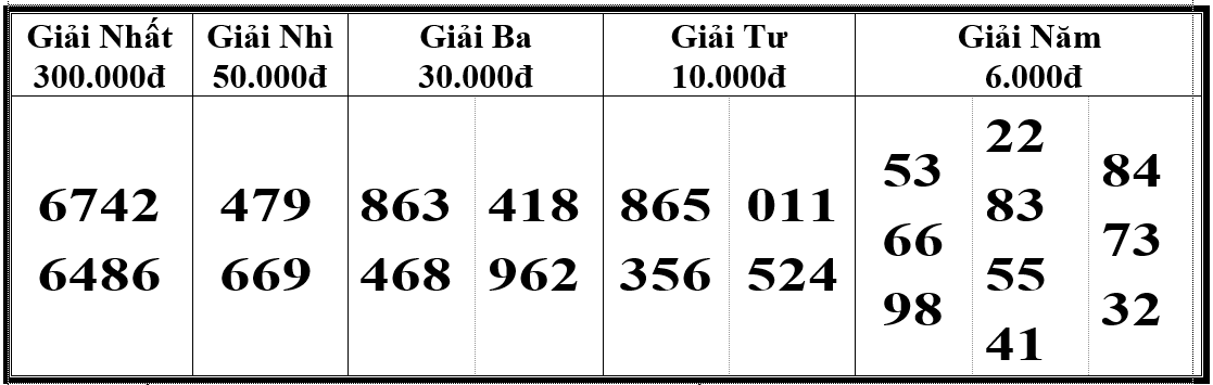 | Theo biên bản mở thưởng ngày 15 tháng 12 năm 2025 - Tại Công ty TNHH MTV Xổ số kiến thiết Hải Dương Ký hiệu M34. Mệnh giá vé 2.000 đồng 02 GIẢI ĐẶC BIỆT TRỊ GIÁ MỖI GIẢI 3.000.000 đồng 00012-73149 Giải khuyến khích (có số hàng chục và hàng đơn vị trùng với số hàng chục và hàng đơn vị của giải đặc biệt ) mỗi giải 6.000đ: 12-49 ![]() - Vé trúng nhiều giải sẽ được lĩnh đủ giá trị các giải (không bao gồm giải đặc biệt ). - Chấm dứt lưu hành loại vé xổ số Bóc ký hiệu M29 vào ngày 9/2/2026. Thanh toán dứt điểm ngày 19/2/2026./. |